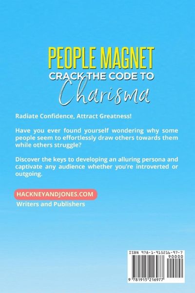 Become a social butterfly and captivate your audience! Have you ever struggled to feel attractive, confident, or charming in social situations? Are you constantly at a loss for words when speaking to new people? Would you love to find new ways to shine? Have you tried various approaches to increase your social skills, yet none of them seem to work? Don't take it personally; becoming charismatic can be difficult and traditional advice often fails to address this challenge. "People Magnet: Crack The Code To Charisma" offers you a new opportunity to transform your social skills and become the life of any party! People will be hanging on your every word. This friendly, helpful book offers you a step-by-step (no fluff!) guide for building an interesting and attractive personality and broadening your life experiences along the way! Brimming with easy-to-implement practical tips and strategies, you will easily overcome social anxiety, form strong connections with others and feel more confident than ever in any social situation. Learn the secrets to speaking clearly, exuding confidence, and using body language effectively. Are you ready? Take the first easy step and order today. Then, take control of your life once and for all.