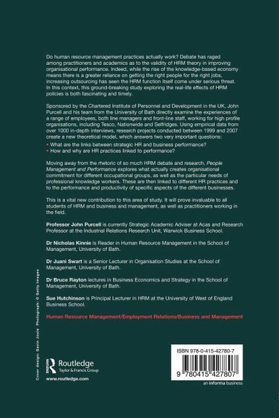 Do human resource management practices actually work? This timely and engaging volume examines the links between people management practices and organizational performance. Focusing on the implementation and impact of HR strategies, the book puts forward a model, which draws attention to: * The importance of the culture and values of the organization * The needs of professional knowledge workers * The links between human resources and performance People Management and Performance takes a critical view of how and why HR practices have had a positive impact on a range of organizations and also considers the implications for theory and practice. Incorporating case studies from well known organizations, such as Nationwide and Selfridges, this book will be of interest to graduate students of HRM and business and management, as well as practitioners working in the field.