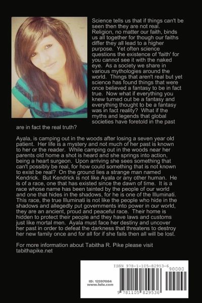 What if the myths and legends that global societies have foretold in the past are in fact the real truth? Ayala is camping out in the woods after losing a seven year old patient. Her life is a mystery and not much of her past is known to her.She sees something that can't possibly be real, for how could something that is not known to exist be real? On the ground lies a strange man named Kendrick. But Kendrick is not like Ayala or any other human. He is of a race, one that has existed since the dawn of time. Ayala must face her destiny and uncover her past in order to defeat the darkness that threatens to destroy her new family once and for all for if she fails then all will be lost.