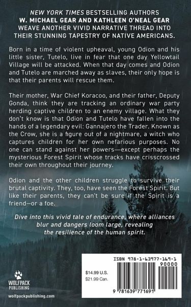 New York Times bestselling authors W. Michael Gear and Kathleen O'Neal Gear weave another vivid narrative thread into their stunning tapestry of Native Americans. Born in a time of violent upheaval, young Odion and his little sister, Tutelo, live in fear that one day Yellowtail Village will be attacked. When that day comes and Odion and Tutelo are marched away as slaves, their only hope is that their parents will rescue them. Their mother, War Chief Koracoo, and their father, Deputy Gonda, think they are tracking an ordinary war party herding captive children to an enemy village. What they don't know is that Odion and Tutelo have fallen into the hands of a legendary evil: Gannajero the Trader. Known as the Crow, she is a figure out of a nightmare, a witch who captures children for her own nefarious purposes. No one can stand against her powers―except perhaps the mysterious Forest Spirit whose tracks have crisscrossed their own throughout their journey. Odion and the other children struggle to survive their brutal captivity. They, too, have seen the Forest Spirit. But like their parents, they can't be sure if the Spirit is a friend―or a foe. Dive into this vivid tale of endurance, where alliances blur and dangers loom large, revealing the resilience of the human spirit.
