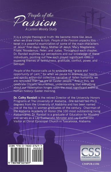 It is a simple theological truth: We become more like Jesus when we draw close to him. People of the Passion unpacks this tenet in a powerful examination of some of the main characters of Jesus' final days: Mary, Mother of Jesus; Mary Magdalene; Pilate; Nicodemus; Peter; and Judas. Throughout each chapter, Dr. Randall explores our perceptions and our knowledge of these individuals, pointing out how each played significant roles in exposing themes of faithfulness, gratitude, conflict, power, and betrayal. People of the Passion calls us to embrace the "grace and opportunity of Lent," for when we pause to examine our hearts and spirits within our collective narrative of fallen humanity, we are reminded that "we are an Easter people." And in this, we celebrate Christ's resurrection, understanding that everything about our redemption hinges upon the most significant event in human history: Easter morning. Dr. Cathy Randall is the retired Director of the University Honors Programs at The University of Alabama. She earned two Ph.D. degrees from the University of Alabama and has been named one of the top 31 women graduates of the twentieth century. Chairman of the Alabama Academy of Honor (the 100 most outstanding living Alabamians), Dr. Randall is a graduate of Education for Ministry and serves as a Lay Eucharistic Minister and Lay Eucharistic Visitor at Christ Episcopal Church in Tuscaloosa, Alabama.