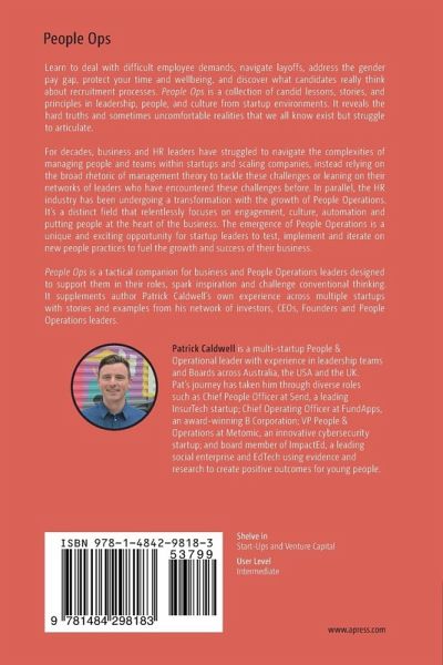 Learn how to deal with difficult employee demands, what candidates actually think about recruitment processes, how to navigate layoffs, address the gender pay gap, and protect your time and wellbeing. People Ops is a collection of candid lessons, stories, and principles in leadership, people, and culture from startup environments. It reveals the hard truths and sometimes uncomfortable realities that we all know exist but struggle to articulate. For decades, business and HR leaders have struggled to navigate the complexities of managing people and teams within startups and scaling companies, instead relying on the broad rhetoric of management theory to tackle these challenges or leaning on their networks of leaders who have encountered these challenges before. In parallel, the HR industry has been undergoing a transformation with the growth of People Operations. It's a distinct field in HR that relentlessly focuses on engagement, culture, automation and putting people at the heart of all business operations. At the intersection of startups and people operations is an increasingly ambiguous business challenge for how startups can apply leading people practices to drive their growth, rather than in spite of their growth. People Ops is a tactical companion for business and People Operations leaders designed to support them in their roles, spark inspiration and challenge conventional thinking. It supplements author Patrick Caldwell's own experience across multiple startups with stories and examples from his network of investors, CEOs, Founders and C-Level HR executives. What You'll Learn Lessons from a path walked building People Operations in a startup environment Uncomfortable truths around the complexities of managing people The key components of a People Operations strategy within a small business Who This Book is For Those in small-mediumsized businesses, especially startups, where the reader is in a position of responsibility for people and culture. They'll likely hold business leadership positions such as Founder, CEO, COO, VP and Director, or they'll be directly within the HR and People Operations space with titles such as CHRO/CPO, Head, Director, Business Partner or Advisor