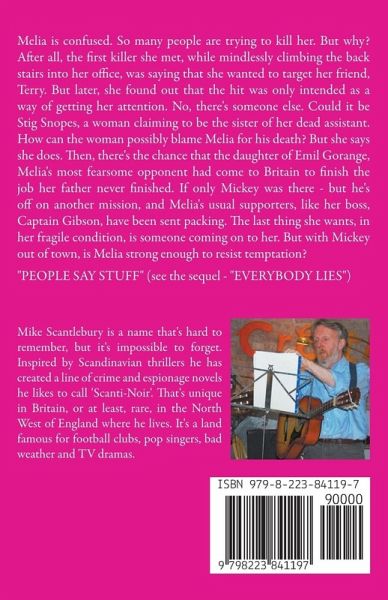 Melia is confused. So many people are trying to kill her. But why? After all, the first killer she met, while mindlessly climbing the back stairs into her office, was saying that she wanted to target her friend, Terry. But later, she found out that the hit was only intended as a way of getting her attention. No, there's someone else. Could it be Stig Snopes, a woman claiming to be the sister of her dead assistant. How can the woman possibly blame Melia for his death? But she says she does. Then, there's the chance that the daughter of Emil Gorange, Melia's most fearsome opponent had come to Britain to finish the job her father never finished. If only Mickey was there - but he's off on another mission, and Melia's usual supporters, like her boss, Captain Gibson, have been sent packing. Then there's Melia's cousin, Liv, but her boyfriend is a policeman and he's out on an assignment too. It's all getting too much! The last thing she wants, in her fragile condition, is someone coming on to her. But with Mickey out of town, is Melia strong enough to resist temptation?