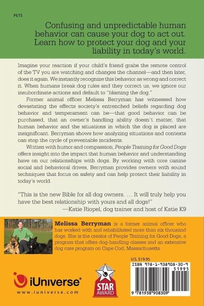 Imagine your reaction if your child’s friend grabs the remote control of the TV you are watching and changes the channel—and then later, does it again. We instantly recognize this behavior as wrong and correct it. When humans break dog rules and they correct us, we ignore our insubordinate actions and default to "blaming the dog." Former animal officer Melissa Berryman has witnessed how devastating the effects society’s entrenched beliefs regarding dog behavior and temperament can be—that good behavior can be purchased, that an owner’s handling ability doesn’t matter, that human behavior and the situations in which the dog is placed are insignificant. Berryman shows how analyzing situations and contexts can stop the cycle of preventable incidents. Written with humor and compassion, People Training for Good Dogs offers insight into the impact that human behavior and understanding have on our relationships with dogs. By working with core canine social and behavioral drives, Berryman provides owners with sound techniques that focus on safety and can help protect their liability in today’s world. "This is the new Bible for all dog owners. … It will truly help you have the best relationship with yours and all dogs!" —Katie Riopel, dog trainer and host of Katie K9