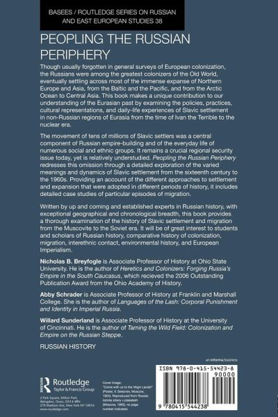 The movement of tens of millions of Slavic settlers was a central component of Russian empire-building, and of the everyday life of numerous social and ethnic groups and remains a crucial regional security issue today, yet it remains relatively understudied. Peopling the Russian Periphery redresses this omission through a detailed exploration of the varied meanings and dynamics of Slavic settlement from the sixteenth century to the 1960s. Providing an account of the different approaches of settlement and expansion that were adopted in different periods of history, it includes detailed case studies of particular episodes of migration.