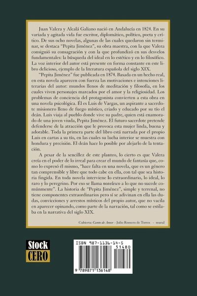 In Spanish, annotated edition. Born in Andalucia in 1824 Juan Valera y Alcalá Galiano was a writer, diplomat, politician, poet and literary critic. Among his eight novels, some unfinished, Pepita Jimenez undoubtedly stands out. The interior voice of the author is permanently present, and underlines his prime concerns: the quest for the aesthetic and philosophical ideal. "Pepita Jiménez" was first published in 1874. Based on real facts, in this novel the literary motivations and intention of the author appear with unusual strength: worlds full of philosophical meditation, in which love and religiousness marked characters struggle between their own consciences and desires. Written as a series of letters the main character is Luis de Vargas, a priest-to-be full of mistic fire. Don Luis, having been raised after his mother's decease by his uncle the Dean, travels to his longtime widowed father's town to meet a young widow who his father is willing to marry. She is Pepita Jimenez, very young, beautiful and sincere, who rapidly catches the youth's eye and makes him plunge into a whirlwind of contradictions: his loyalty towards his father, his vows and his heart desires collide while his uncle, the Dean tries to steer him away from temptation. Though quite predictable in its ending, Pepita Jimenez constitutes a delicious reading due to Valera's mastery of Spanish, a nowadays undisputable characteristic that however received more than his due share of criticism in his own times.