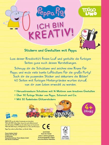 - Über 90 farbige Sticker von Peppa, Schorsch und Co.