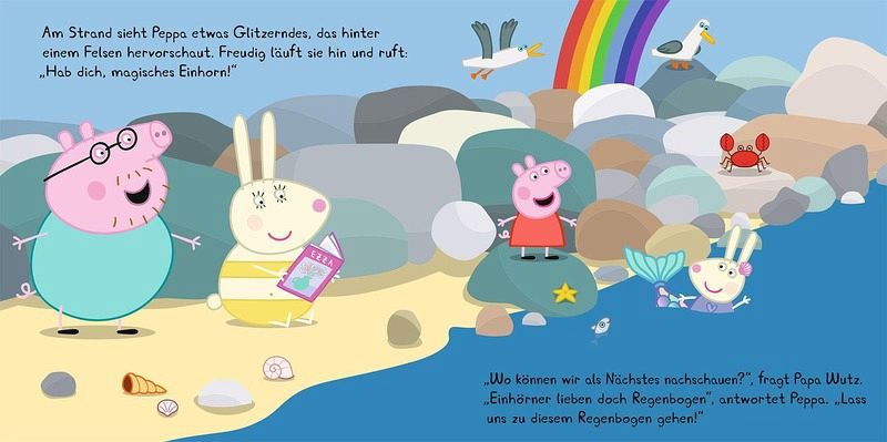 Peppa will mit ihrem magischen Einhorn spielen, aber sie kann es nirgends finden. Ist es beim Märchenschloss, am Strand oder vielleicht am Ende des Regenbogens? Mach dich mit Peppa auf die Suche! Schau hinter die Klappen und finde heraus, wo sich das Einhorn versteckt hat.