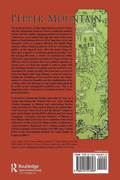 First published in 2007. The political history of late imperial/early modern China and the relationship between China's traditional political culture and the rapidly changing political environment of China today, are examined through this study of the iconic figure of Yang Jisheng. Born in 1516, Yang had a brief and traumatic career as a junior official in the middle Ming dynasty, before being executed in 1555 for criticising the politics of the imperial state. After his death, Yang was held up as a martyr to Confucian political morality. Over the ensuing 450 years, a variety of constituencies within China have appropriated and deployed Yang's memory in different ways to promote their own political agendas. In recent years, as China has sought to come to grips with the ideological decline of socialism and the need for a new foundation for public morality, there has been a revival of interest in figures like Yang Jisheng. A series of events including the rebuilding of his ancestral shrine, the rededication of a school he founded, and the republication of his writings, show how his legacy is once again being taken up by actors on the contemporary political scene. This is an important study of the power of political myth in China, past and present.