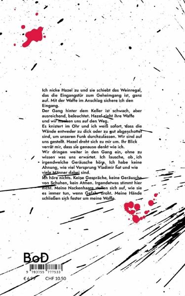 Ich nicke Hazel zu und sie schiebt das Weinregal, das die Eingangstür zum Geheimgang ist, ganz auf. Mit der Waffe im Anschlag sichere ich den Eingang. Der Gang hinter dem Keller ist schwach, aber ausreichend, beleuchtet. Hazel zieht ihre Waffe und wir machen uns auf den Weg. Es knistert im Ohr und ich weiß sofort, dass die Wände entweder zu dick oder zu gut abgeschottet sind, um unseren Funk durchzulassen. Wir sind auf uns gestellt. Hazel dreht sich zu mir um. Ihr Blick verrät mir, dass sie genauso denkt wie ich. Wir dringen weiter in den Gang ein, ohne zu wissen was uns erwartet. Ich lausche, ob ich irgendwelche Geräusche höre. Ich habe keine Ahnung, wie viel Vorsprung Vladimir hat und wie viele Männer dabei sind. Ich höre nichts. Keine Gespräche, keine Geräusche von Schuhen, kein Atmen. Irgendetwas stimmt hier nicht. Meine Nackenhaare stellen sich auf, wie sie es immer tun, wenn Gefahr droht. Meine Hände schließen sich fester um meine Waffe.