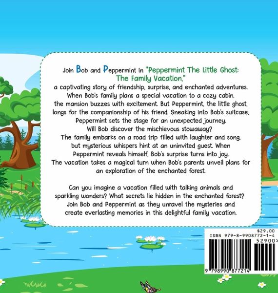 Join Bob and Peppermint in "Peppermint The Little Ghost: The Family Vacation," a captivating story of friendship, surprise, and enchanted adventures. When Bob's family plans a special vacation to a cozy cabin, the mansion buzzes with excitement. But Peppermint, the little ghost, longs for the companionship of his friend. Sneaking into Bob's suitcase, Peppermint sets the stage for an unexpected journey. Will Bob discover the mischievous stowaway? The family embarks on a road trip filled with laughter and song, but mysterious whispers hint at an uninvited guest. When Peppermint reveals himself, Bob's surprise turns into joy. The vacation takes a magical turn when Bob's parents unveil plans for an exploration of the enchanted forest.