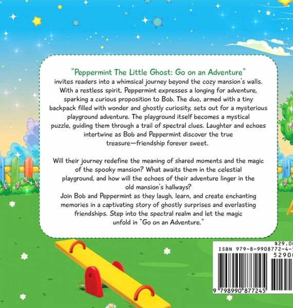 "Peppermint The Little Ghost: Go on an Adventure" invites readers into a whimsical journey beyond the cozy mansion's walls. With a restless spirit, Peppermint expresses a longing for adventure, sparking a curious proposition to Bob. The duo, armed with a tiny backpack filled with wonder and ghostly curiosity, sets out for a mysterious playground adventure. The playground itself becomes a mystical puzzle, guiding them through a trail of spectral clues. Laughter and echoes intertwine as Bob and Peppermint discover the true treasure-friendship forever sweet.
