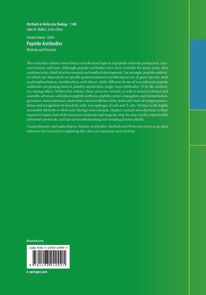 This extensive volume covers basic and advanced aspects of peptide antibody production, characterization and uses. Although peptide antibodies have been available for many years, they continue to be a field of active research and method development. For example, peptide antibodies which are dependent on specific posttranslational modifications are of great interest, such as phosphorylation, citrullination and others, while different forms of recombinant peptide antibodies are gaining interest, notably nanobodies, single chain antibodies, TCR-like antibodies, among others. Within this volume, those areas are covered, as well as several technical and scientific advances: solid phase peptide synthesis, peptide carrier conjugation and immunization, genomics, transcriptomics, proteomics and elucidation of the molecular basis of antigen presentation and recognition by dendritic cells, macrophages, B cells and T cells. Written in the highly successful Methods in Molecular Biology series format, chapters include introductions to their respective topics, lists of the necessary materials and reagents, step-by-step, readily reproducible laboratory protocols and tips on troubleshooting and avoiding known pitfalls.