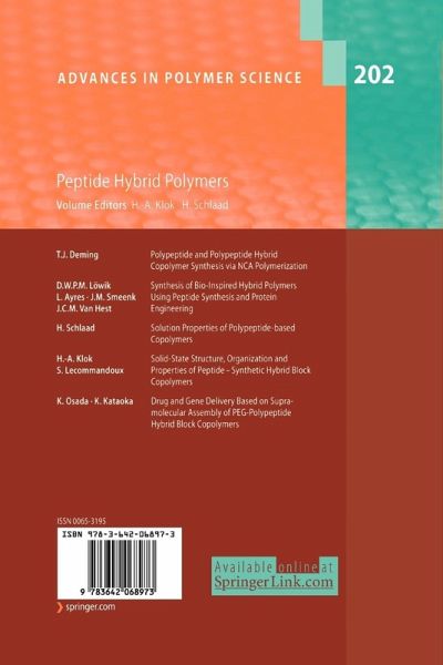 From the reviews: "The editors and authors provide an overview of the state-of-the-art in a burgeoning area that merges the controlled ... activity of one of Nature's main class of polymers-proteins and peptides-with the more traditional chemistry of synthetic polymers. ... this volume nicely introduces the researcher and student to the area of peptide polymer hybrids and outlines the areas of synthesis and self-assembly as well as potential medical applications. This is a fast developing area of interdisciplinary research, and this volume sets the scene well." (Stuart J Rowan, Journal of the American Chemical Society, Vol. 129 (4), 2007)