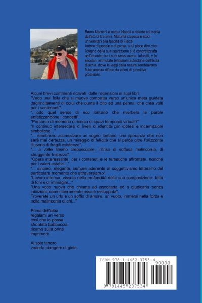 Bruno Mancini,nato a Napoli nel 1943,risiede ad Ischia dall'età di tre anni.A lui piace dire che l'origine della sua ispirazione o forse solo un iniziale impulso ancestrale ed istintivo,il vero basilare momento poetico della sua vita,si è concretizzato nell'incontro,propriamente fisico,tra i suoi sensi acerbi,infantili,e le secolari,immutate,tentazioni autoctone dell'Isola d'Ischia,dove le leggi della natura sembravano fluire ancora difese da valori di primitive protezioni.Alcuni brevi commenti ricavati dalle recensioni ai suoi libri:"Opera interessante per i contenuti e le tematiche…mehr