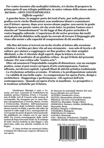 Il titolo di questo testo - Per una critica alla "vostra arte" - si riferisce al fatto che, alla fine, si troverà un invito rivolto al lettore alla creazione artistica. L'esperienza di chi scrive proviene da molti anni di attività didattica. Oltre ad assumersi l'improbabile compito di dimostrare, con un esempio pratico, come si può creare un'opera d'arte, l'autore affronta, nei diversi capitoli, i grandi filoni di attività artistica tradizionale - La rivoluzione artistica avvenuta - Il talento e la predisposizione naturale - La validità di una bella copia - La comparazione tra opere d'arte, design e architettura - Happenings e performance - Gli equivoci dell'arte contemporanea - Quando un'opera d'arte si manifesta - Le prospettive e le tendenze artistiche per il futuro.