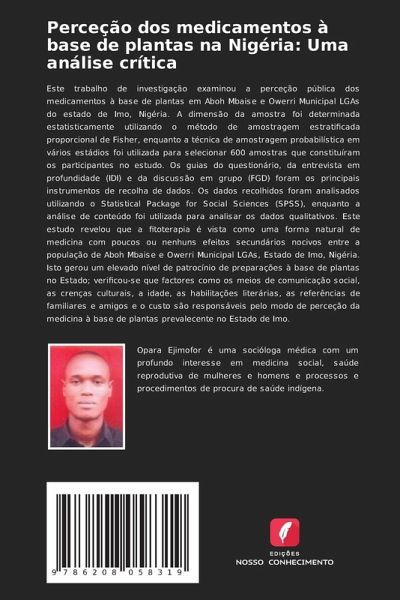 Este trabalho de investigação examinou a perceção pública dos medicamentos à base de plantas em Aboh Mbaise e Owerri Municipal LGAs do estado de Imo, Nigéria. A dimensão da amostra foi determinada estatisticamente utilizando o método de amostragem estratificada proporcional de Fisher, enquanto a técnica de amostragem probabilística em vários estádios foi utilizada para selecionar 600 amostras que constituíram os participantes no estudo. Os guias do questionário, da entrevista em profundidade (IDI) e da discussão em grupo (FGD) foram os principais instrumentos de recolha de dados. Os dados recolhidos foram analisados utilizando o Statistical Package for Social Sciences (SPSS), enquanto a análise de conteúdo foi utilizada para analisar os dados qualitativos. Este estudo revelou que a fitoterapia é vista como uma forma natural de medicina com poucos ou nenhuns efeitos secundários nocivos entre a população de Aboh Mbaise e Owerri Municipal LGAs, Estado de Imo, Nigéria. Isto gerou um elevado nível de patrocínio de preparações à base de plantas no Estado; verificou-se que factores como os meios de comunicação social, as crenças culturais, a idade, as habilitações literárias, as referências de familiares e amigos e o custo são responsáveis pelo modo de perceção da medicina à base de plantas prevalecente no Estado de Imo.