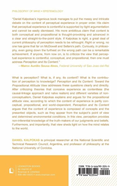 What is perception? What is, if any, its content? What is the contribution of perception to knowledge? Perception and Its Content: Toward the Propositional Attitude View argues that perception has conceptual, propositional, and world-dependent content. After criticizing those theories of experience that conceive it as contentless (the causal-linkage approach and naïve realism), the book examines the nature of perceptual content. Daniel Kalpokas critically scrutinizes different varieties of non-conceptualism and claims that the content of experience is partly conceptual. Perception and Its Content defends the propositional-attitude view, according to which perceptual content is propositional in nature, and explores the world-dependent character of such content. Kalpokas holds that the content of experience is composed of concepts and the presented objects, such as they appear from the subject's point of view and determined environmental conditions. According to this view, perception provides non-inferential knowledge of the truth-makers of our judgments and beliefs. Furthermore, and importantly, that view sheds light on how the mind relates to the world.