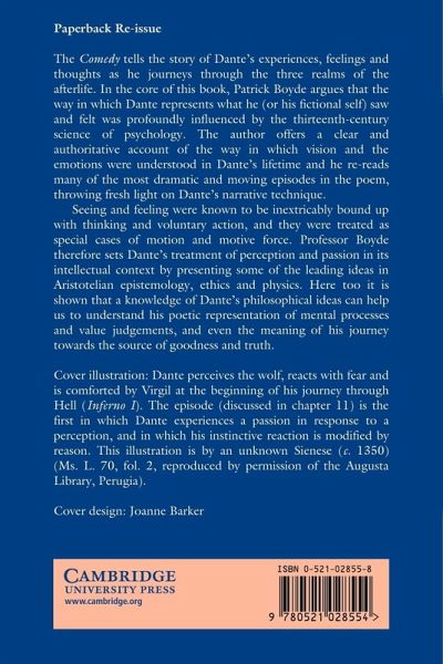 Patrick Boyde argues that the way in which Dante represents what he (or his fictional self) saw and felt was profoundly influenced by the thirteenth-century science of psychology. Professor Boyde offers an authoritative account of the way in which vision and the emotions were understood in Dante's lifetime, and rereads many of the most dramatic and moving episodes in the Comedy, throwing light on Dante's narrative technique. Seeing and feeling were known to be inextricably bound up with thinking and voluntary action, and were treated as special cases of motion and motive forces. Dante's treatment of perception and passion is set in the context of Aristotelian epistemology, ethics and physics. In these areas too a knowledge of Dante's philosophical ideas is shown to illuminate his poetic representation of mental processes and value judgements, and the meaning of his journey towards the source of goodness and truth.