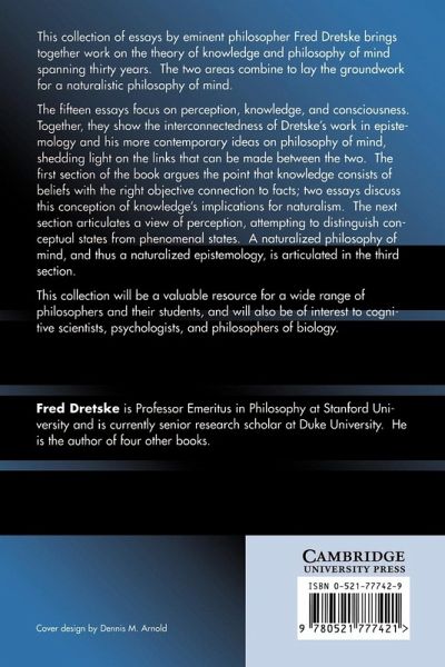 This collection of essays by eminent philosopher Fred Dretske brings together work on the theory of knowledge and philosophy of mind spanning thirty years. The two areas combine to lay the groundwork for a naturalistic philosophy of mind. The fifteen essays focus on perception, knowledge, and consciousness. Together, they show the interconnectedness of Dretske's work in epistemology and his more contemporary ideas on philosophy of mind, shedding light on the links which can be made between the two. The first section of the book argues the point that knowledge consists of beliefs with the right objective connection to facts; two essays discuss this conception of knowledge's implications for naturalism. The next section articulates a view of perception, attempting to distinguish conceptual states from phenomenal states. A naturalized philosophy of mind, and thus a naturalized epistemology, is articulated in the third section. This collection will be a valuable resource for a wide range of philosophers and their students, and will also be of interest to cognitive scientists, psychologists, and philosophers of biology.