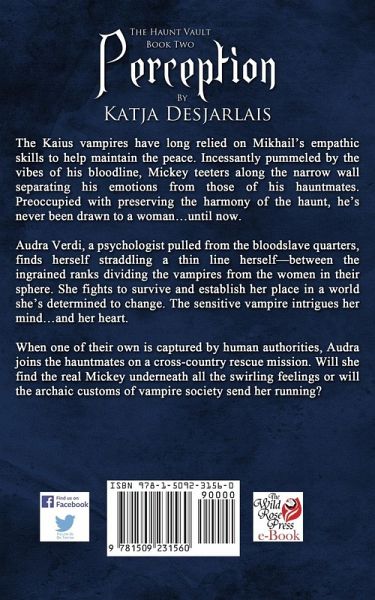 The Kaius vampires have long relied on Mikhail's empathic skills to help maintain the peace. Incessantly pummeled by the vibes of his bloodline, Mickey teeters along the narrow wall separating his emotions from those of his hauntmates. Preoccupied with preserving the harmony of the haunt, he's never been drawn to a woman...until now. Audra Verdi, a psychologist pulled from the bloodslave quarters, finds herself straddling a thin line herself-between the ingrained ranks dividing the vampires from the women in their sphere. She fights to survive and establish her place in a world she's determined to change. The sensitive vampire intrigues her mind...and her heart. When one of their own is captured by human authorities, Audra joins the hauntmates on a cross-country rescue mission. Will she find the real Mickey underneath all the swirling feelings or will the archaic customs of vampire society send her running?