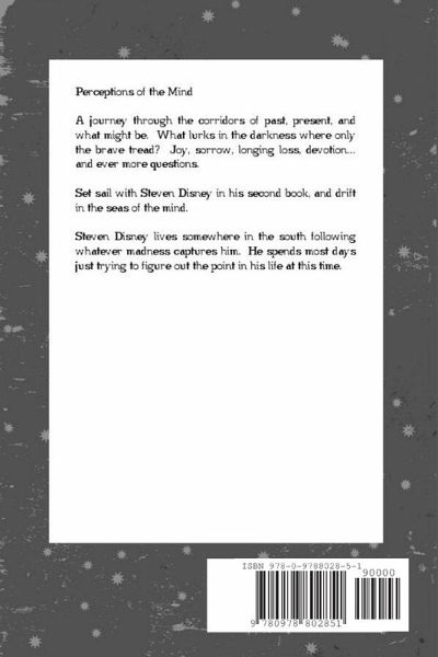 A journey through the corridors of past, present, and what be. What lurks in the darkness where only the brave tread? Joy, sorrow, longing, loss, devotion... and ever more questions. Set sail with Steven Disney in his second book, and drift in the seas of the mind.