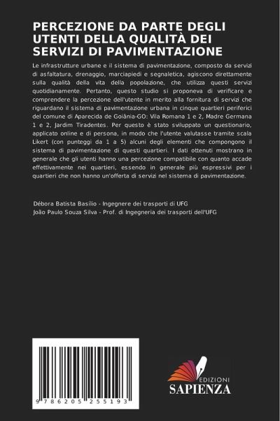 Le infrastrutture urbane e il sistema di pavimentazione, composto da servizi di asfaltatura, drenaggio, marciapiedi e segnaletica, agiscono direttamente sulla qualità della vita della popolazione, che utilizza questi servizi quotidianamente. Pertanto, questo studio si proponeva di verificare e comprendere la percezione dell'utente in merito alla fornitura di servizi che riguardano il sistema di pavimentazione urbana in cinque quartieri periferici del comune di Aparecida de Goiânia-GO: Vila Romana 1 e 2, Madre Germana 1 e 2, Jardim Tiradentes. Per questo è stato sviluppato un questionario, applicato online e di persona, in modo che l'utente valutasse tramite scala Likert (con punteggi da 1 a 5) alcuni degli elementi che compongono il sistema di pavimentazione di questi quartieri. I dati ottenuti mostrano in generale che gli utenti hanno una percezione compatibile con quanto accade effettivamente nei quartieri, essendo in generale più espressivi per i quartieri che non hanno un'offerta di servizi nel sistema di pavimentazione.