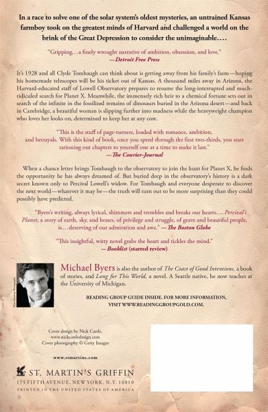 A novel of ambition and obsession centered on the race to discover Pluto in 1930, pitting an untrained Kansas farm boy against the greatest minds of Harvard at the run-down Lowell Observatory in Arizona In 1928, the boy who will discover Pluto, Clyde Tombaugh, is on the family farm, grinding a lens for his own telescope under the immense Kansas sky. In Flagstaff, Arizona, the staff of Lowell Observatory is about to resume the late Percival Lowell's interrupted search for Planet X. Meanwhile, the immensely rich heir to a chemical fortune has decided to go west to hunt for dinosaurs and in Cambridge, Massachussetts, the most beautiful girl in America is going slowly insane while her ex-heavyweight champion boyfriend stands by helplessly, desperate to do anything to keep her. Inspired by the true story of Tombaugh and set in the last gin-soaked months of the flapper era, Percival's Planet tells the story of the intertwining lives of half a dozen dreamers, schemers, and madmen. Following Tombaugh's unlikely path from son of a farmer to discoverer of a planet, the novel touches on insanity, mathematics, music, astrophysics, boxing, dinosaur hunting, shipwrecks-and what happens when the greatest romance of your life is also the source of your life's greatest sorrow.