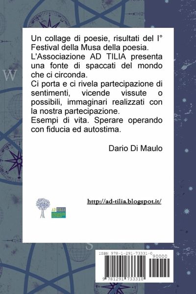 Un collage di poesie, risultati del I° Festival della Musa della Poesia. L'Associazione AD TILIA presenta una fonte di spaccati del mondo che ci circonda. Ci porta e ci rivela partecipazione di sentimenti, vicende vissute o possibili, immaginari realizzabili con la nostra partecipazione. Esempi di vita. Sperare operando con fiducia e autostima.
