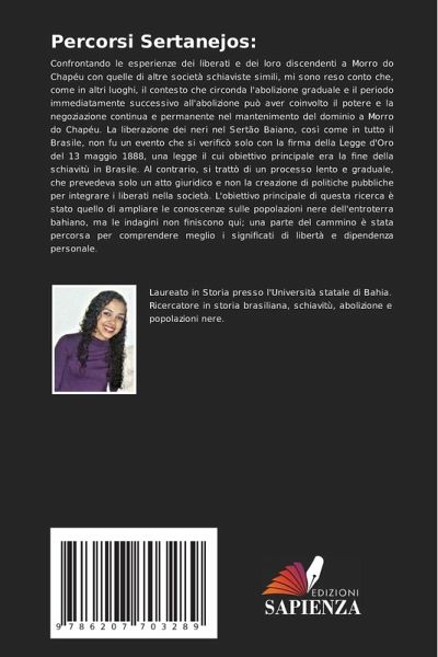 Confrontando le esperienze dei liberati e dei loro discendenti a Morro do Chapéu con quelle di altre società schiaviste simili, mi sono reso conto che, come in altri luoghi, il contesto che circonda l'abolizione graduale e il periodo immediatamente successivo all'abolizione può aver coinvolto il potere e la negoziazione continua e permanente nel mantenimento del dominio a Morro do Chapéu. La liberazione dei neri nel Sertão Baiano, così come in tutto il Brasile, non fu un evento che si verificò solo con la firma della Legge d'Oro del 13 maggio 1888, una legge il cui obiettivo principale era la fine della schiavitù in Brasile. Al contrario, si trattò di un processo lento e graduale, che prevedeva solo un atto giuridico e non la creazione di politiche pubbliche per integrare i liberati nella società. L'obiettivo principale di questa ricerca è stato quello di ampliare le conoscenze sulle popolazioni nere dell'entroterra bahiano, ma le indagini non finiscono qui; una parte del cammino è stata percorsa per comprendere meglio i significati di libertà e dipendenza personale.