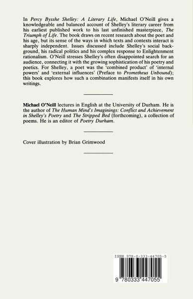 In 'Percy Bysshe Shelly: A Literary Life' , Michael O'Neill gives a knowledgeable and balanced account of Shelley's literary career from his earliest published work to his last unfinished masterpiece, The Triumph of Life . The book draws on recent research about the poet and his age, but its sense of the ways in which texts and contexts interact is sharply independent. Issues discussed include Shelley's social background, his radical politics and his complex response to Enlightenment rationalism. O'Neill stresses Shelley's often disappointed search for an audience, connecting it with the growing sophistication of his poetry and poetics. For Shelley, a poet was the 'combined product' of 'internal powers' and 'external influences' (Preface to Prometheus Unbound ); this book explores how such a combination manifests itself in his own writings.