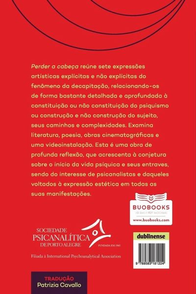 Perder a cabeça: abjeção, conflito estético e crítica psicanalítica examina o tema da decapitação nas várias expressões artísticas como uma metáfora da destruição da mente. Giuseppe Civitarese discute tanto a teoria psicanalítica quanto a crítica de arte, perguntando se os artistas têm algo a dizer sobre a experiência estética como paradigma do que é mais verdadeiro e mais profundo na análise. Perder a cabeça analisa obras de arte bem conhecidas da literatura clássica, cinema e arte contemporânea para auxiliar na busca de um aprofundamento da compreensão psicanalítica, principalmente, sobre o obscuro e intenso sentimento de desamparo vivido na traumática experiência de separação com o objeto primário (abjeção) quando ainda não existe um eu constituído.