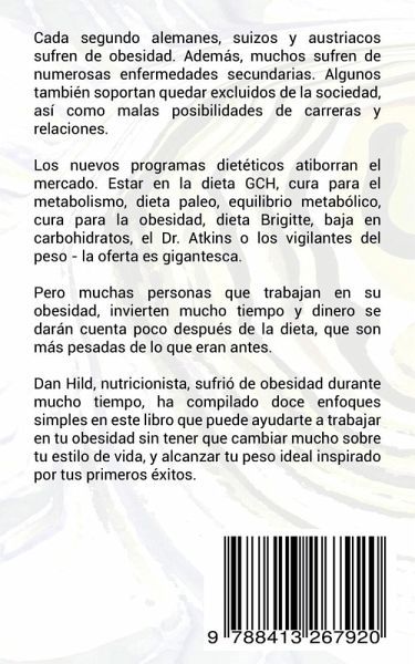 Cada segundo alemanes, suizos y austriacos sufren de obesidad. Además, muchos sufren de numerosas enfermedades secundarias. Algunos también soportan quedar excluidos de la sociedad, así como malas posibilidades de carreras y relaciones. Los nuevos programas dietéticos atiborran el mercado. Estar en la dieta GCH, cura para el metabolismo, dieta paleo, equilibrio metabólico, cura para la obesidad, dieta Brigitte, baja en carbohidratos, el Dr. Atkins o los vigilantes del peso - la oferta es gigantesca. Pero muchas personas que trabajan en su obesidad, invierten mucho tiempo y dinero se darán cuenta poco después de la dieta, que son más pesadas de lo que eran antes. Dan Hild, nutricionista, sufrió de obesidad durante mucho tiempo, ha compilado doce enfoques simples en este libro que puede ayudarte a trabajar en tu obesidad sin tener que cambiar mucho sobre tu estilo de vida, y alcanzar tu peso ideal inspirado por tus primeros éxitos.