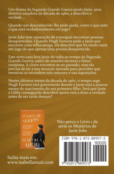 Um drama da Segunda Grande Guerra ajuda Janie, uma detetive amadora da década de 1960, a descobrir a verdade... Quando um desconhecido lhe pede ajuda, como é que sabe o que está verdadeiramente em jogo? Janie Juke tem reputação de conseguir encontrar pessoas desaparecidas. Quando Hugh Furness pede a Janie que encontre uma velha amiga, ela descobre que há muito mais em jogo do que apenas uma pessoa desaparecida. Este novo caso leva Janie de volta ao tempo da Segunda Grande Guerra, palco de missões secretas e feitos corajosos. A chave encontra-se no passado, mas ela precisa de ter a sua intuição apurada para perceber que mentiras se escondem nos rumores e nas suposições. Janie segue os passos de Hercule Poirot, a famosa personagem dos livros de Agatha Christie, e pede ajuda à jornalista local, Libby Frobisher. Na cidades costeiras de Tamarisk Bay e Tidehaven, Janie e Libby encontram pistas e juntam os factos. Uma nova década aproxima-se. Nestes últimos meses da década de 1960, o tempo urge. Hugh Furness está gravemente doente e Janie está a poucos meses do nascimento do seu primeiro filho. Será que Janie e Libby conseguirão descobrir quem está a dizer a verdade antes de ser tarde demais? Se gosta do estilo de Agatha Christie, histórias repletas de voltas e reviravoltas, vai adorar a série "Crimes em Sussex". Compre já este segundo livro da popular série "Mistérios e Crimes em Sussex", perfeito para todos os que adoram um clássico policial ao estilo de Agatha Christie. Fique a conhecer as personagens que têm leitores presos desde a primeira à última página...