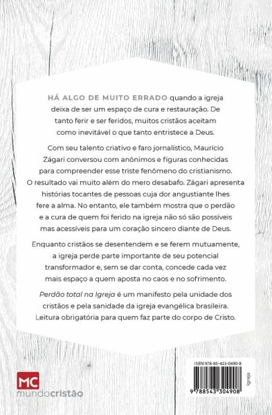 Há algo de muito errado quando a igreja deixa de ser um espaço de cura e restauração. De tanto ferir e ser feridos, muitos cristãos cinicamente aceitam como inevitável o que tanto entristece a Deus. Com seu talento criativo e faro jornalístico, Maurício Zágari conversou com anônimos e figuras conhecidas para compreender esse triste fenômeno do cristianismo. O resultado vai muito além do mero desabafo. Zágari apresenta histórias tocantes de pessoas cuja dor angustiante lhes fere a alma. No entanto, ele também mostra que o perdão não só é possível mas acessível para um coração sincero diante de Deus. Enquanto cristãos se desentendem e se ferem mutuamente, a igreja perde parte importante de seu potencial transformador e, sem se dar conta, concede cada vez mais espaço a quem aposta no caos e no sofrimento. Perdão total na Igreja é um manifesto pela unidade dos cristãos e pela sanidade da igreja evangélica brasileira. Leitura obrigatória para quem faz parte do corpo de Cristo.