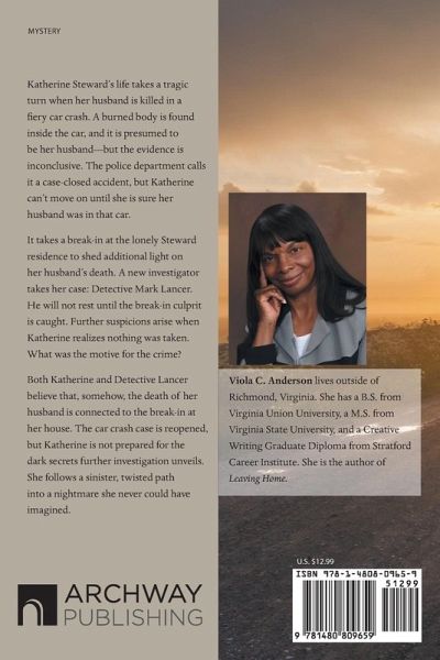 Katherine Steward's life takes a tragic turn when her husband is killed in a fiery car crash. A burned body is found inside the car, and it is presumed to be her husband-but the evidence is inconclusive. The police department calls it a case-closed accident, but Katherine can't move on until she is sure her husband was in that car. It takes a break-in at the lonely Steward residence to shed additional light on her husband's death. A new investigator takes her case: Detective Mark Lancer. He will not rest until the break-in culprit is caught. Further suspicions arise when Katherine realizes nothing was taken. What was the motive for the crime? Both Katherine and Detective Lancer believe that, somehow, the death of her husband is connected to the break-in at her house. The car crash case is reopened, but Katherine is not prepared for the dark secrets further investigation unveils. She follows a sinister, twisted path into a nightmare she never could have imagined.