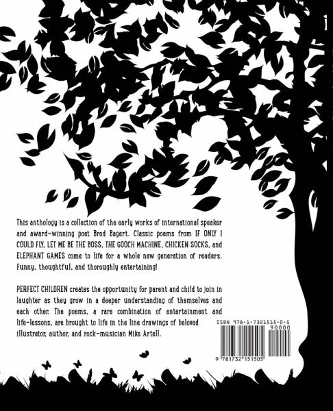 This anthology is a collection of the early works of international speaker and award-winning poet Brod Bagert. Classic poems from If Only I Could Fly, Let Me Be the Boss, The Gooch Machine, Chicken Socks, and Elephant Games come to life for a whole new generation of readers. Funny, thoughtful, and thoroughly entertaining! Perfect Children creates the opportunity for parent and child to join in laughter as they grow in a deeper understanding of themselves and each other. The poems, a rare combination of entertainment and life-lessons, are brought to life in the line drawings of beloved illustrator, author, and rock-musician Mike Artell.