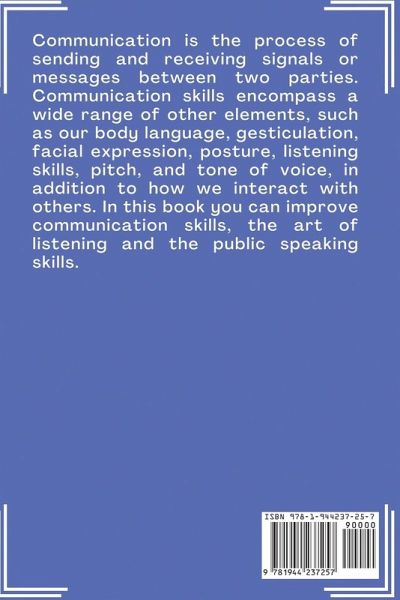 Communication is the process of sending and receiving signals or messages between two parties. Communication skills encompass a wide range of other elements, such as our body language, gesticulation, facial expression, posture, listening skills, pitch, and tone of voice, in addition to how we interact with others. Today's highly competitive world requires effective communication skills, whether oral or written. According to Robert Anderson, communication is the exchange of ideas, opinions, or information through speech, writing, or visuals. Written communication refers to communication using written symbols. In this book you can improve comunication skills, the art of listening and the public speaking skills.