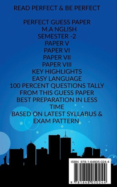 The Perfect Guess Paper has been written for M.A English examination.it is based on latest syllabus and exam pattern of Magadh and Patliputra universities. This guess paper is commonly useful for both Magadh and Patliputra universities. Patliputra University was divided from Magadh University in 2017, hence the syllabus is same. Very important questions have been covered. Objectives, short answer questions and long answer questions have been covered chapter wise. The answer given in this guess paper is very soft and easy to understand. This perfect guess paper has been prepared with proper care which will surely be very useful to readers. KEY HIGHLIGHTS ¿ EASY LANGUAGE ¿ 100 PERCENT QUESTIONS TALLY FROM THIS GUESS PAPER ¿ BEST PREPARATION IN LESS TIME ¿ BASED ON LATEST SYLLABUS & EXAM PATTERN ¿ COST EFFECTIVE ¿ LESS COST MORE EFFECTIVE