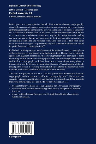 This book is organized in two parts. The first part studies information-theoretic cryptography and the promise it holds for cryptography in IoT. The second part separately discusses combinatorial and Boolean cryptography, and then presents the hybrid combinatorial-Boolean model for perfect secrecy in IoT.