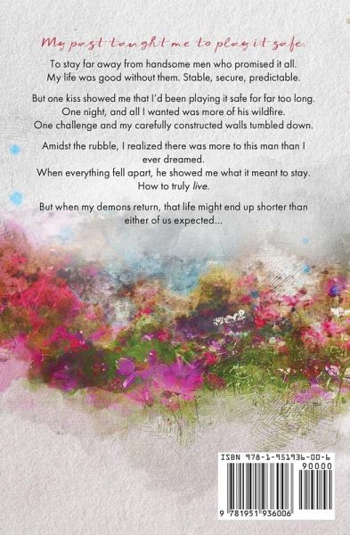 My past taught me to play it safe. To stay far away from handsome men who promised it all. My life was good without them. Stable, secure, predictable. But one kiss showed me that I'd been playing it safe for far too long. One night, and all I wanted was more of his wildfire. One challenge and my carefully constructed walls tumbled down. Amidst the rubble, I realized there was more to this man than I ever dreamed. When everything fell apart, he showed me what it meant to stay. How to truly live. But some demons don't stay buried. The past can come knocking when you least expect. And the life he's showing me might be shorter than either of us expected...