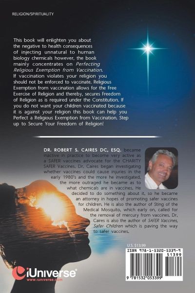 This book will enlighten you about the negative to health consequences of injecting unnatural to human biology chemicals however, the book mainly concentrates on Perfecting Religious Exemption from Vaccination. If vaccination violates your religion you should not be enforced to vaccinate. Religious Exemption from vaccination allows for the Free Exercise of Religion and thereby, secures Freedom of Religion as, is required under the Constitution. If you do not want your children vaccinated because it is against your religion this book can help you perfect a Religious Exemption from vaccination.