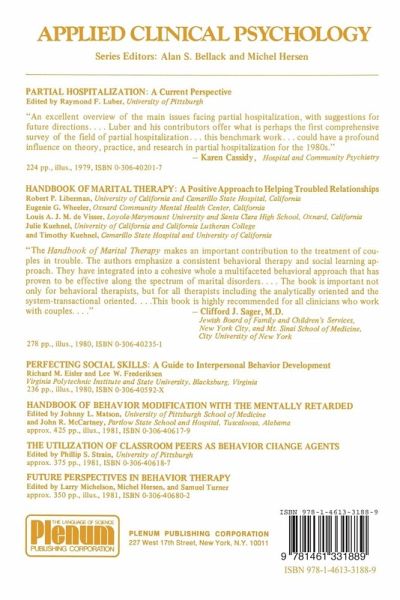 That man is a social being is almost axiomatic. Our interpersonal relation ships can be sources of the most rewarding or the most painful of human experiences. To a large measure our accomplishments in life depend on the facility with which we interact with others-our social skill. The acquisition of social skills is, of course, a natural part of the overall socialization process. However, in many instances it becomes necessary or desirable to develop further an individual's social facilities. Such skill development is the topic of this book. Two major goals were kept in mind in the writing of this book. The first was to provide a conceptual framework within which to view social skills. Such a framework allows one to understand why it is important to develop social skills, and the effects that such skill development should have. If the reader has a thorough understanding of the concept of social skills and their development, it becomes possible to make appropriate innovations andadaptions to his or her own circumstances. Without such a framework, social-skills training becomes little more than a collection of disjointed techniques. Also, without a conceptual understanding, pro cedural innovations are difficult to incorporate into training.