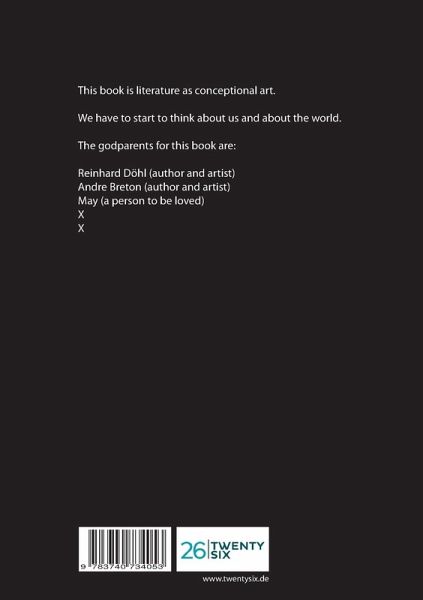 This book is literature as concepional art.We have to start to think about us and about the world.The godparents for this book are:Reinhard Döhl (author and artist)Andre Breton (author and artist)May (a person to be loved)