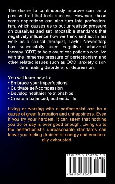 The desire to continuously improve can be a positive trait that fuels success. However, those same aspirations can also turn into perfectionism, which causes us to put unrealistic pressure on ourselves and set impossible standards that negatively influence how we think and act In his work as a clinical therapist, Taylor Newendorp has successfully used cognitive behavioral therapy (CBT) to help countless patients who live with the immense pressure of perfectionism and other related issues such as OCD, anxiety disorders, eating disorders, or depression. You will learn how to:Embrace your imperfections Cultivate self-compassion Develop healthier relationships Create a balanced, authentic life Living or working with a perfectionist can be a cause of great frustration and unhappiness. Even if you try your hardest, it can seem that nothing you do or say is ever good enough. Living up to the perfectionist's unreasonable standards can leave you feeling drained of energy and emotionally exhausted.