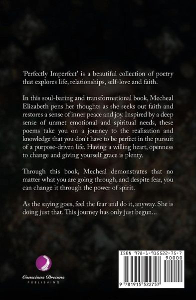 'Perfectly Imperfect' is a beautiful collection of poetry that explores life, relationships, self-love and faith. In this soul-baring and transformational book, Mecheal Elizabeth pens her thoughts as she seeks out faith and restores a sense of inner peace and joy. Inspired by a deep sense of unmet emotional and spiritual needs, these poems take you on a journey to the realisation and knowledge that you don't have to be perfect in the pursuit of a purpose-driven life. Having a willing heart, openness to change and giving yourself grace is plenty. Through this book, Mecheal demonstrates that no matter what you are going through, and despite fear, you can change it through the power of spirit. As the saying goes, feel the fear and do it, anyway. She is doing just that. This journey has only just begun...