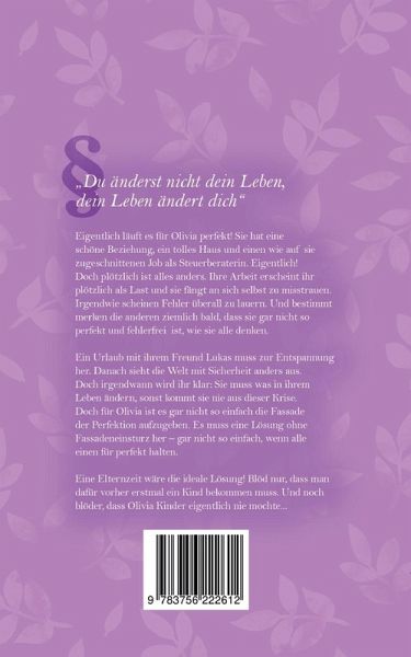 Eigentlich läuft es für Olivia perfekt! Sie hat eine schöne Beziehung, ein tolles Haus und einen wie auf sie zugeschnittenen Job als Steuerberaterin. Eigentlich! Doch plötzlich ist alles anders. Ihre Arbeit erscheint ihr als Last und sie fängt an sich selbst zu misstrauen. Irgendwie scheinen Fehler überall zu lauern. Und bestimmt merken die anderen ziemlich bald, dass sie gar nicht so perfekt und fehlerfrei ist, wie sie alle denken. Ein Urlaub mit ihrem Freund Lukas muss zur Entspannung her. Danach sieht die Welt mit Sicherheit anders aus. Doch irgendwann wird ihr klar: Sie muss was in ihrem Leben ändern, sonst kommt sie nie aus dieser Krise. Doch für Olivia ist es gar nicht so einfach die Fassade der Perfektion aufzugeben. Es muss eine Lösung ohne Fassadeneinsturz her - gar nicht so einfach, wenn alle einen für perfekt halten. Eine Elternzeit wäre die ideale Lösung! Blöd nur, dass man dafür vorher erstmal ein Kind bekommen muss. Und noch blöder, dass Olivia Kinder eigentlich niemochte...