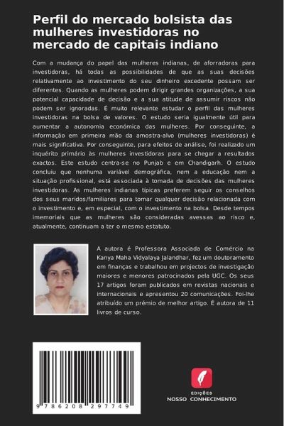 Com a mudança do papel das mulheres indianas, de aforradoras para investidoras, há todas as possibilidades de que as suas decisões relativamente ao investimento do seu dinheiro excedente possam ser diferentes. Quando as mulheres podem dirigir grandes organizações, a sua potencial capacidade de decisão e a sua atitude de assumir riscos não podem ser ignoradas. É muito relevante estudar o perfil das mulheres investidoras na bolsa de valores. O estudo seria igualmente útil para aumentar a autonomia económica das mulheres. Por conseguinte, a informação em primeira mão da amostra-alvo (mulheres investidoras) é mais significativa. Por conseguinte, para efeitos de análise, foi realizado um inquérito primário às mulheres investidoras para se chegar a resultados exactos. Este estudo centra-se no Punjab e em Chandigarh. O estudo concluiu que nenhuma variável demográfica, nem a educação nem a situação profissional, está associada à tomada de decisões das mulheres investidoras. As mulheres indianas típicas preferem seguir os conselhos dos seus maridos/familiares para tomar qualquer decisão relacionada com o investimento e, em especial, com o investimento na bolsa. Desde tempos imemoriais que as mulheres são consideradas avessas ao risco e, atualmente, continuam a ter o mesmo estatuto.