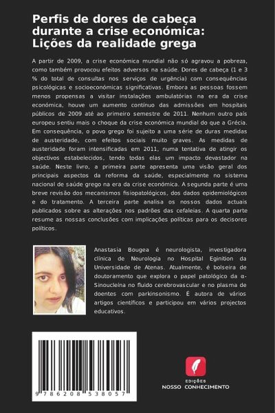 A partir de 2009, a crise económica mundial não só agravou a pobreza, como também provocou efeitos adversos na saúde. Dores de cabeça (1 e 3 % do total de consultas nos serviços de urgência) com consequências psicológicas e socioeconómicas significativas. Embora as pessoas fossem menos propensas a visitar instalações ambulatórias na era da crise económica, houve um aumento contínuo das admissões em hospitais públicos de 2009 até ao primeiro semestre de 2011. Nenhum outro país europeu sentiu mais o choque da crise económica mundial do que a Grécia. Em consequência, o povo grego foi sujeito a uma série de duras medidas de austeridade, com efeitos sociais muito graves. As medidas de austeridade foram intensificadas em 2011, numa tentativa de atingir os objectivos estabelecidos, tendo todas elas um impacto devastador na saúde. Neste livro, a primeira parte apresenta uma visão geral dos principais aspectos da reforma da saúde, especialmente no sistema nacional de saúde grego na era da crise económica. A segunda parte é uma breve revisão dos mecanismos fisiopatológicos, dos dados epidemiológicos e do tratamento. A terceira parte analisa os nossos dados actuais publicados sobre as alterações nos padrões das cefaleias. A quarta parte resume as nossas conclusões com implicações políticas para os decisores políticos.