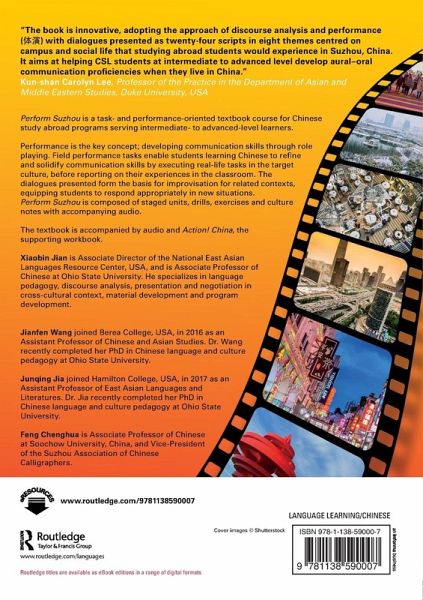 Perform Suzhou is a task- and performance-oriented textbook course for Chinese study abroad programs serving intermediate- to advanced-level learners. Performance is the key concept; developing communication skills through role playing. Field performance tasks enable students learning Chinese to refine and solidify communication skills by executing real-life tasks in the target culture, before reporting on their experiences in the classroom. The dialogues presented form the basis for improvisation for related contexts, equipping students to respond appropriately in new situations. Perform Suzhou is composed of staged units, drills, exercises and culture notes with accompanying audio. The textbook is accompanied by audio and Action! China, the supporting workbook.